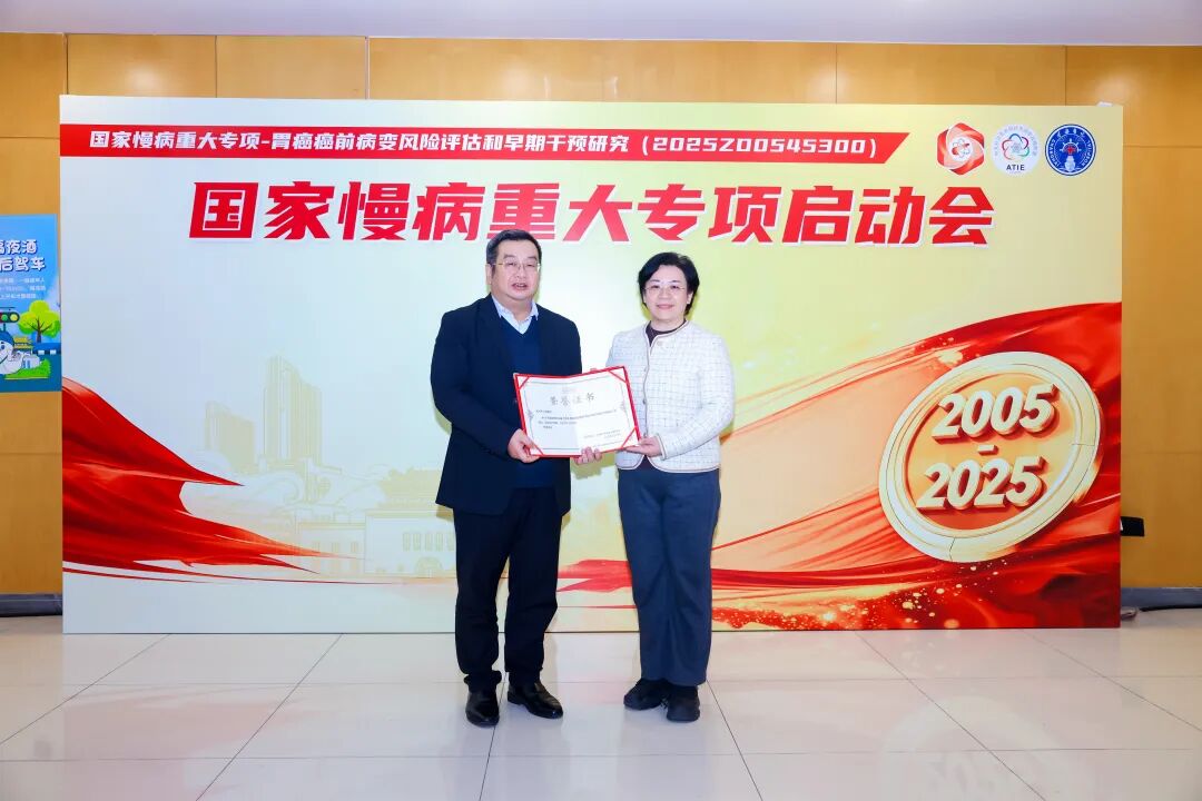 该项目由我国消化病学领域专家、海军军医大学长海医院李兆申院士团队杜奕奇教授牵头,旨在建立并推广胃癌早期防治和干预的“中国方案”。在2025年12月19日于上海举行的项目启动会上,南方医院化州医院是唯一入选的县级医院。我院项目负责人王志青副院长出席会议,代表医院参与方案讨论并领取参与证书。