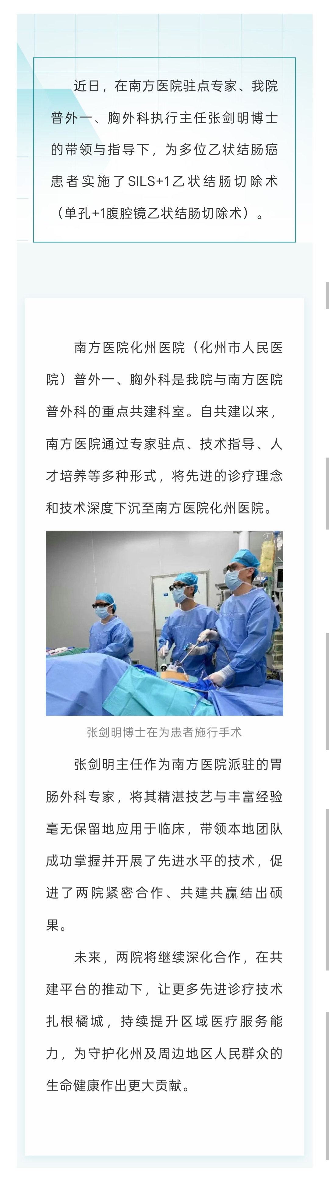 共建结硕果:省级专家助力,南方医院化州医院成功开展单孔+1腹腔镜(SILS+1)乙状结肠切除术