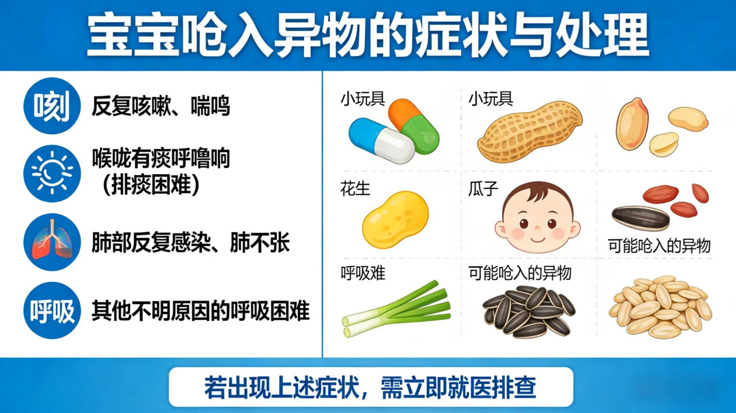✅ 怀疑宝宝把小玩具、花生瓜子等呛到气管里了;